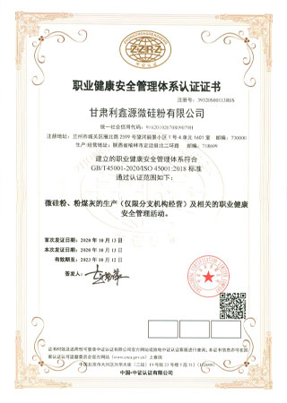 甘肅利鑫源微硅粉有限公司是專業(yè)微硅粉生產(chǎn)加工廠家,從事研發(fā)高品質(zhì)微硅粉,以出口為主的科技型企業(yè)。自2004年以來,公司專做微硅粉十七年。擁有先進(jìn)的生產(chǎn)和化驗(yàn)設(shè)備,并通 過了ISO9001:2015質(zhì)量管理體系認(rèn)證、ISO145001:2018環(huán)境管理體系認(rèn)證和ISO 45001: 2018職業(yè)健康管理體系認(rèn)證。